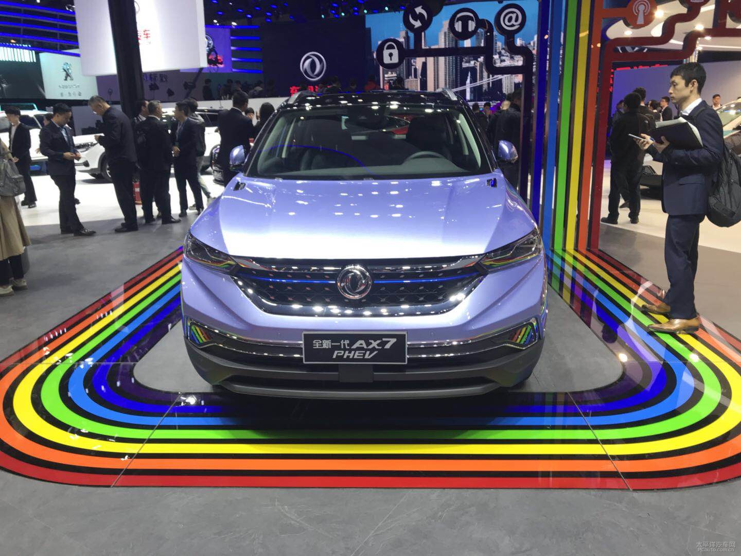 新汽车根据新一代风神AX7打造出,仅选用了红底LOGO及其专享深蓝色原素PHEV尾标的装点。