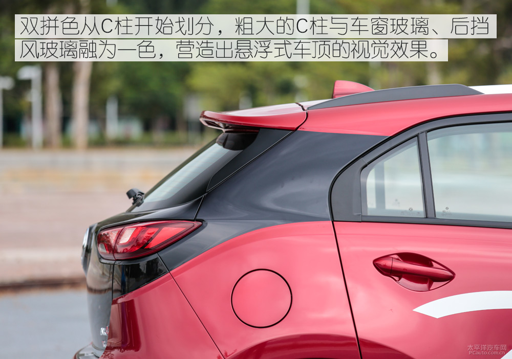 车体色调除开四种基本色外,还出示更为人性化的黑红、黄黑二种撞色款。撞色款与基本色款的差别取决于A、B、C柱及其电动尾门门边框,熏黑了设计方案让车子顶部展现升降式的空间感,更显炫酷,更能突显该车的原色。