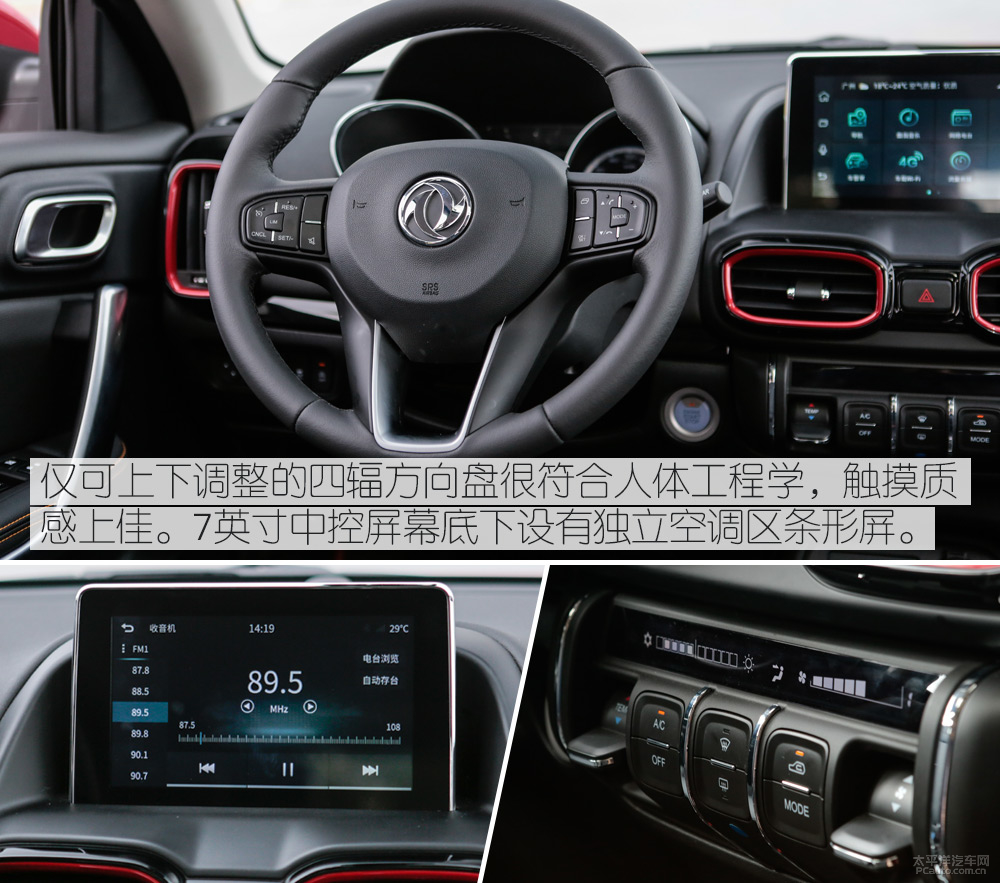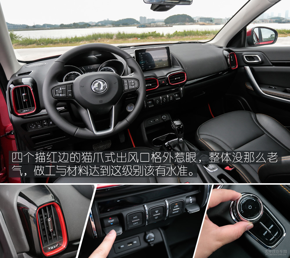 车内饰:速度感表里如一与表面一样,东风风神AX4竭尽全力主要表现得“我们不一样”的姿势,四个猫爪式通风口对称式地遍布在仪表台两边,弹跳的鲜红色与坐椅包边的淡黄色相映成趣,相相较别的的东风风神车系,看起来更加炫酷、开朗。