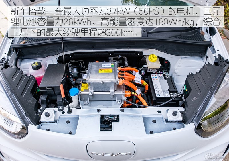 科莱威CLEVER配用一台至大功率为37kW(50PS)的电动机,选用来源于宁德伊控动力装置公司生产制造的三元锂电池组,电池电量为26kWh、高效率能量相对密度达160Wh/kg,综合性工作状况下的较大续航里程数超300km。(图/文/摄:尊流汽车网 宇智波民)