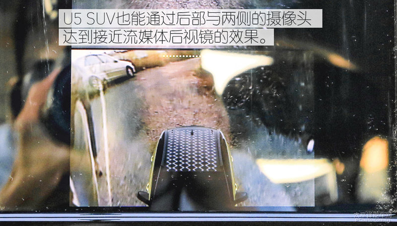 像如今时兴的那类流媒体服务器倒车镜,实际上U5 SUV也可以根据后侧与两边的监控摄像头做到贴近的实际效果。但是画质会遭受监控摄像头视角及其自然环境阳光照射的危害。