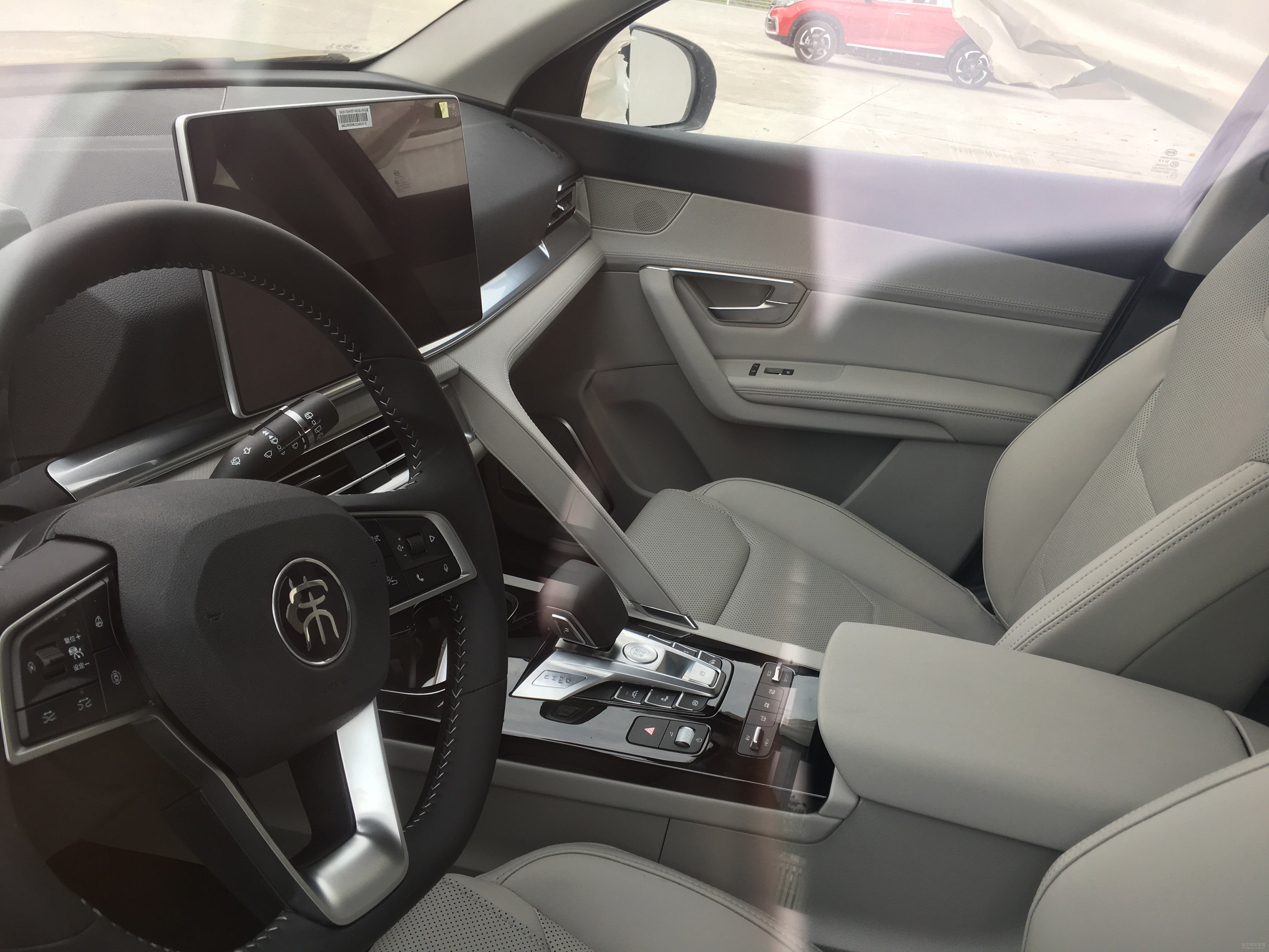 从当场照片看,新车内装饰关键点与先前官方发布的车内饰官图相一致,飘浮中控台设计方案选用12.8英寸8核响应式转动飘浮Pad,电子档把也出現在实车里。