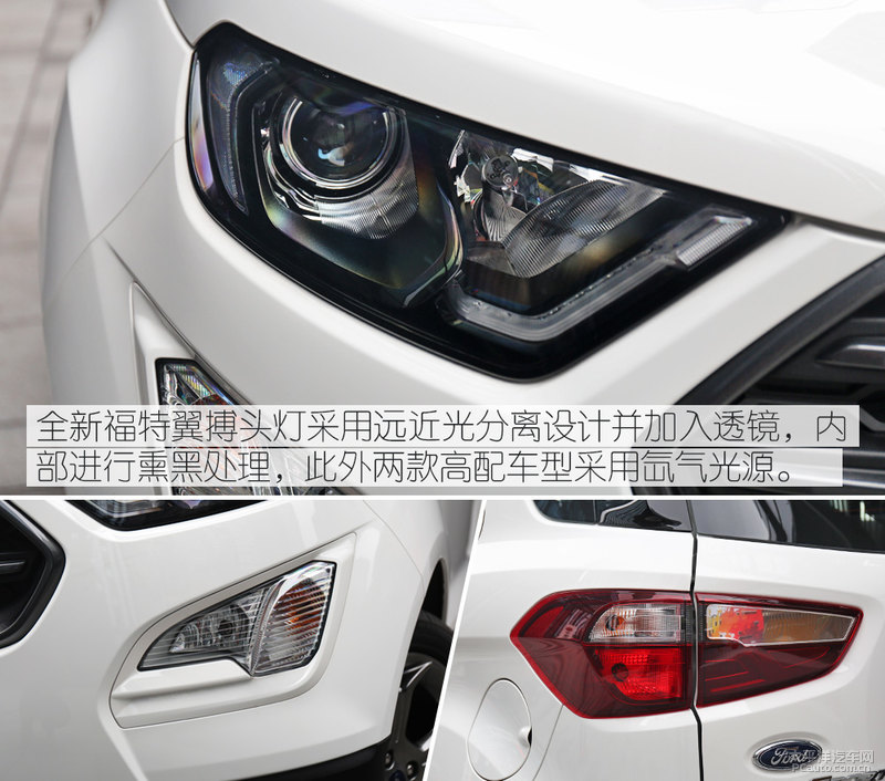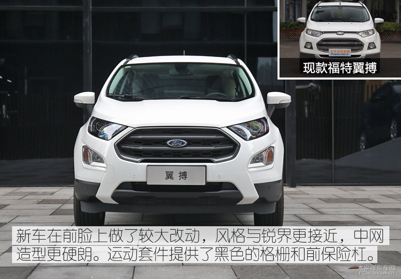 全新升级福特翼搏给人的第一印象是又长性子了。新汽车添加了大量的粗狂线框,引擎盖的线框更笔挺,再加总面积更大的梯形前杠及其尖锐的的头灯造型设计,的确与该款车系对比更有气魄。头灯与前雾灯的造型设计均有转变,头灯改成近远光分离式设计方案,近光灯添加了镜片,而车灯的内部构造也具有几何图形层次感,看上去更有灵气。试架的车系配置了氙气灯,这也是该款车系沒有的。试驾车型还添加了健身运动外型模块,灰黑色格珊、熏黑了车灯及其前后左右熏黑了保险杆和灰黑色铝轮毂让小翼搏看上去更有气质。