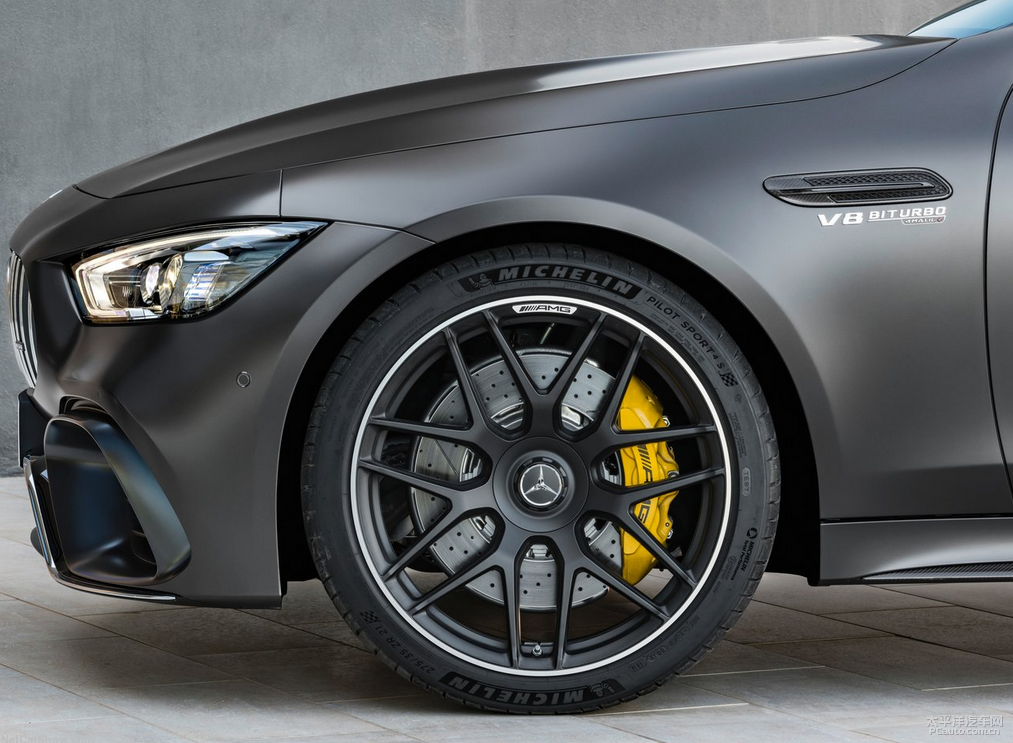 梅赛德斯奔驰-AMG GT53 4-Door配对了健身运动规范规格型号10辐转盘,前胎配对规格为255/45 R19的车胎,后轮胎尺寸为285/40 R19。