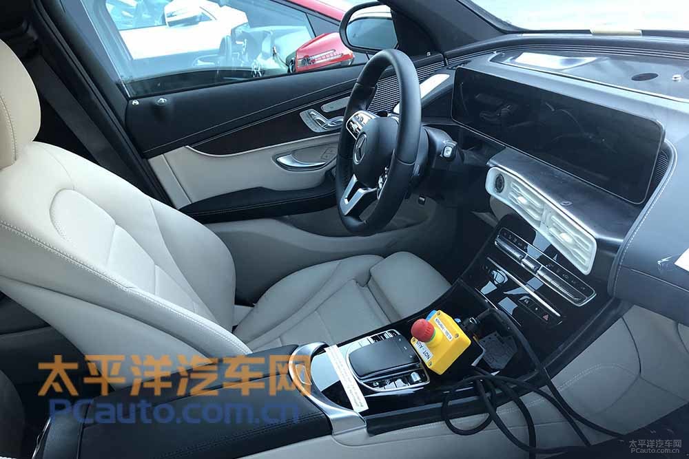 除此之外,此车有装配线了EQ系列产品车系专享的“线路板设计风格”的空调风口、紫蓝色的仪表盘电源板、车内氛围灯和全新升级的三辐式汽车方向盘并有着双大拇指操纵(Dual Thumb Controls)系统软件,而中控台正下方的中央空调和多媒体系统物理学功能键区则持续了新款奔驰GLC室内设计风格。