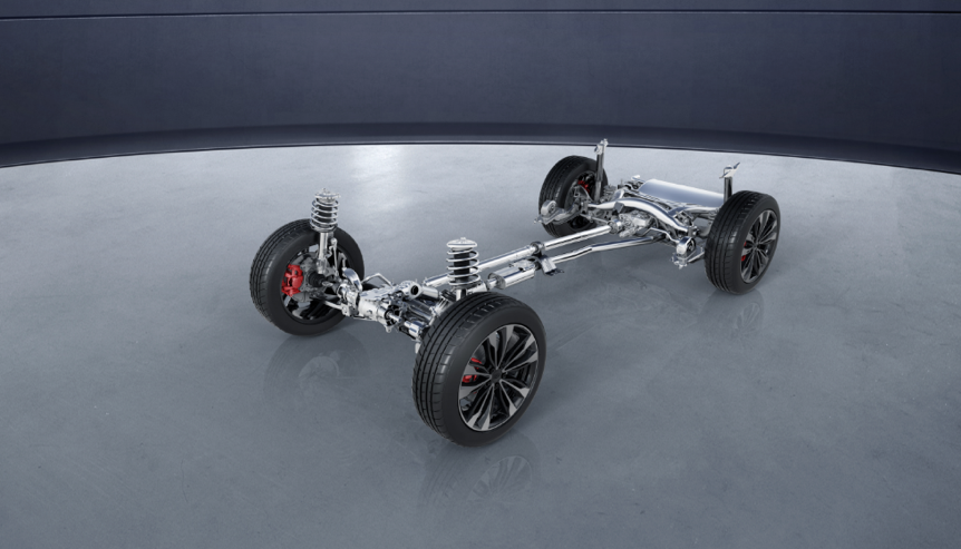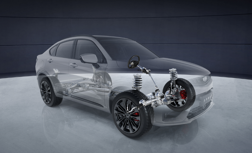吉利星越配置了博格华纳第五代液压式四驱系统,有着轻量结构,选用了离心式风机电动液压泵,可保持50:50的前轮最大扭矩转速占比分派。