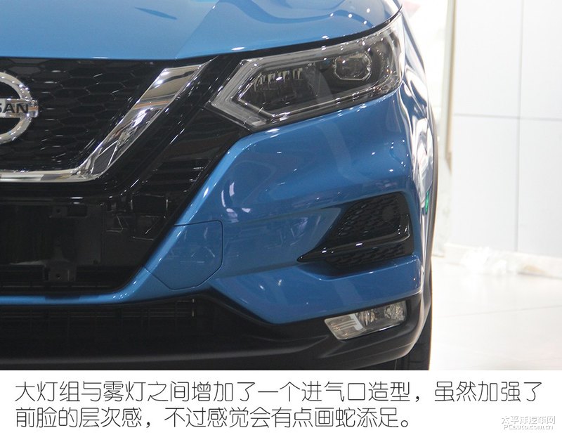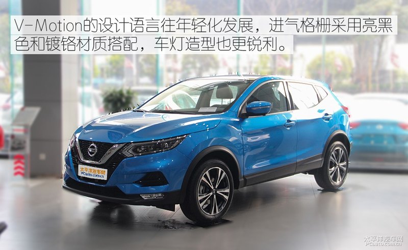 新款逍客同歩了国际版车系的设计方案,曰产V-Motion设计语言往低龄化层面发展趋势,前脸总面积对比该款车系更大,內部选用蜂巢状款式。LED大灯造型设计锋利,前包围着两边造型设计更为立体式且更为进风口造型设计更加繁杂。