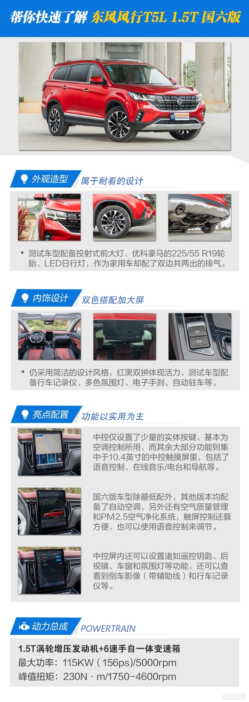 【尊流汽车网 测评频道栏目】东风风行主打产品车系的市场价一向给人较为性价比高的印像,与平级竞争对手对比,它常常维持较性价比高,但它的精准定位是确立的,就是说考虑应用性的另外,在性价比高层面可以反映出优点。如流行T5L,就是说主推家庭装的七座SUV,因此它大量的是考虑到室内空间与乘座。前不久,人们取得了东风风行T5L国六版试驾车,看一下“国六”以后的流行T5L主要表现怎样。