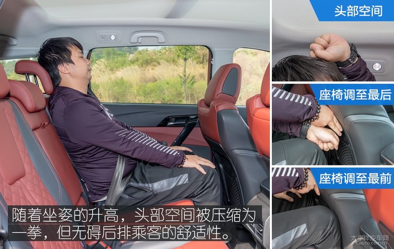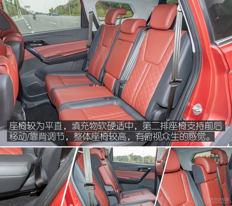 坐椅注重的并不是材料、包囊,只是舒适度和协调能力,以第二排坐椅特征分析,容许前后左右调整的力度非常大,并且椅背的视角也适用多级别调整,远途乘座时能够 半躺。2 3 2的合理布局是更偏重于五座情况,不用让第五位旅客独守第三排,当必须7人乘座的情况下,它也可以办理好这一每日任务。