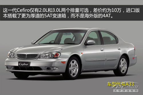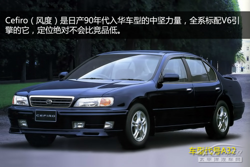 日产风度Cefiro是在1994年发布的曰产中级车,市井誉为为“死肥佬”,中国如今也有许多它的背影在街头巷尾中出現,均为A32、A33这几代的车系,在上世纪九十年代中后期刚开始進口入华,一直到2005年被国内天籁所取代。目前仍维持完好无损的大部分为风范A33车系,配用2.0L V6和3.0L V62款六缸模块,那时候市场价在40-55万内。
