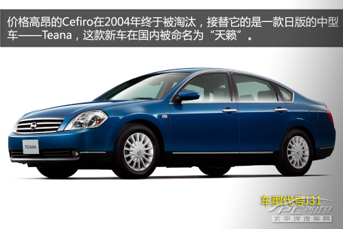 刚刚人们提及,第一代曰产Teana是2004年发布的新汽车,并在2005年刚开始国内生产制造的,编号为J31的它,原形是一款日版车系。对比风范车系,天籁得出了更为蛮横霸道的车里室内空间(可以说基本上每一个规格都比竞争对手做变大一码),出示2.0L直列四缸的新手入门柴油发动机减少价钱门坎,而屡获巨奖的VQ系列产品柴油发动机再次供货,这给还要進口的丰田佳美产生了极大的工作压力。直至2006年10月广州国际车展上,丰田佳美改名“丰田凯美瑞”,并在2007年4月宣布国内退出,这时候日式中级车三个骨干力量才悉数国内结束。