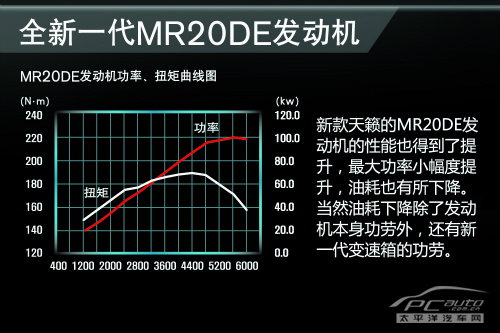 此外最该开心的是,除开2.5L车型驱动力提高外,本来的2.0L车型驱动力也获得提高。虽然2.0L车型還是选用MR20DE柴油发动机,但是因为改善了气缸顶筒的材料,至大功率获得发展提高(新天籁选用的QR25DE驱动力比奇瑞汽车的QR25DE更强也归功于该项技术性)。除此之外,新的MR20DE柴油发动机耗油量也足以降低。