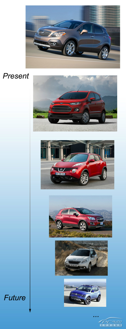 比紧凑SUV小的车系,中国還是有许多。前边说过的CrossPolo,也有日产逍客也算作打过擦边。但假如说范畴上的中小型SUV,那麼现阶段再售的应当说只能别克昂科拉。而迅速就需要开售的福特翼搏也是一款规范的中小型SUV。现阶段在国外早已开售或公布的每款中小型SUV也相继出現,这儿用非常简单形象化的方法例举出来吧: