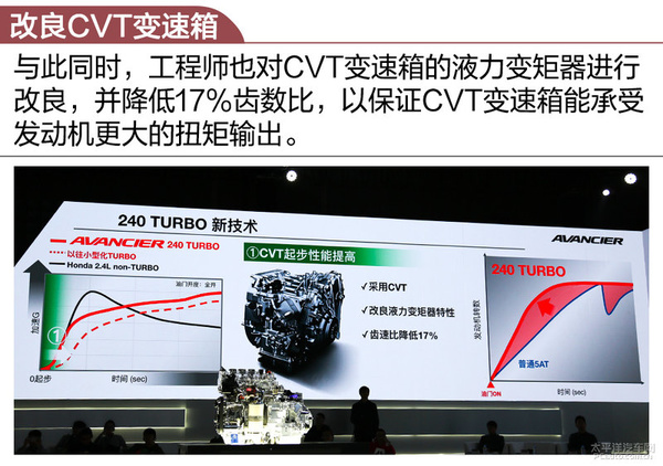 对于冠道240TURBO为什么不象CDX那般选用双离合器变速器。冠道的开发设计责任人砂押胜男老先生得出的叫法是,240TURBO更重视平稳的驱动力輸出,而不是注重速度感,因而CVT变速器更为适合。