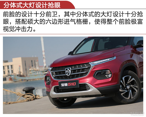 前边说过,宝骏510精准定位的是中小型SUV,而应对的人群则是年青一族,依照以前中等的设计方案线路无法取悦这些人。因此在设计方案上,它与宝骏汽车以前车系的室内设计风格拥有显著的区别,在其中分离式的车灯设计方案非常引人注意,全新升级设计方案的进气格栅让人一眼就记住了,也脱颖于其他的一众的中小型SUV。
