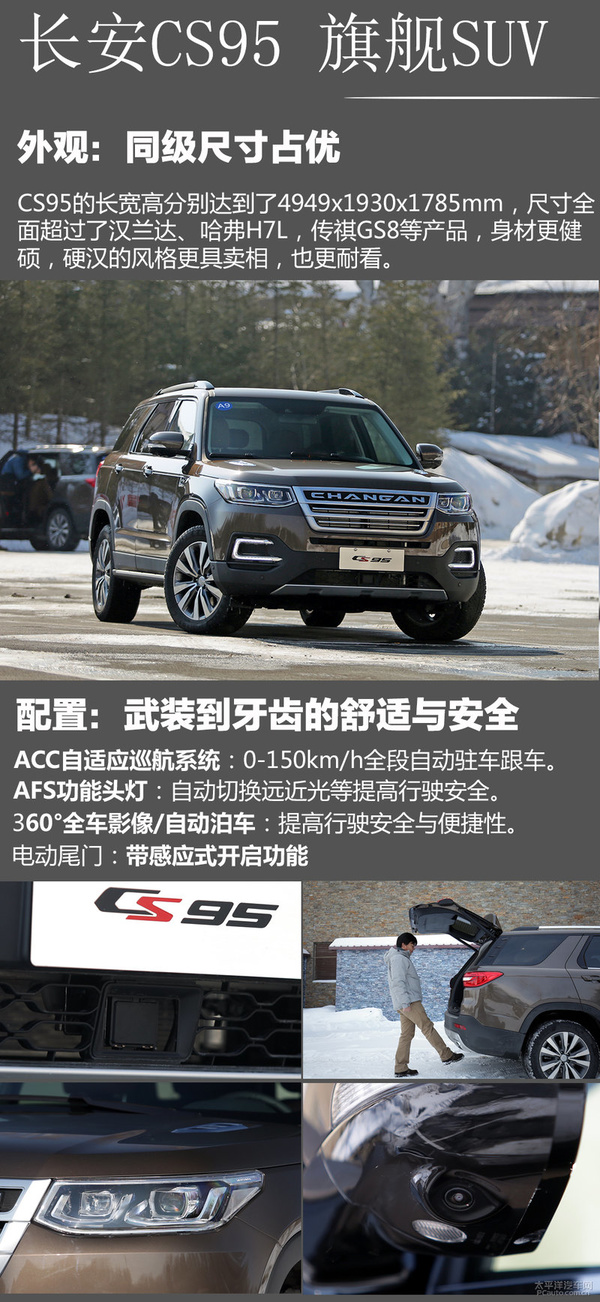 【尊流汽车网 新车试驾频道栏目】最近中大中型七座SUV销售市场被炒的乐不可支,她们并不是合资企业只是人们的独立商品,就在传祺GS8与长城哈佛H7L的交锋高矮未现的情况下,北京长安又进去搅乱并产生了自身的中大中型旗舰级SUV商品CS95,这个在汽车展时就备受关心的新款车型在零下20度的长白山迈入了它的首试,也许第一眼并沒有GS8设计方案的那麼令人印象深刻,可是本质却尤其强大,这货真的是超重量级的。