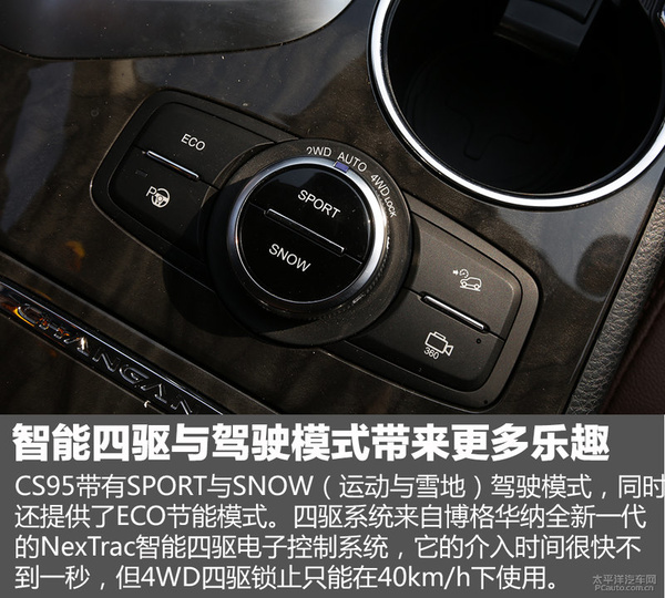 CS95的四驱系统来源于博格华纳全新升级一代的NexTrac智能化四驱电子器件自动控制系统,它的干预時间迅速不上一秒。但在风雪地面中因为人们配置了雪地轮胎,因此速度更快了能够 挑选是AUTO四驱方式,而四驱锁档模一般 只有维持在车速40km/h下列,我们可以了解为是解困方式,因为此次试架标准比较有限人们并沒有对这套四驱系统开展更系统软件的检测,在取得试驾车以后会开展检测,特此说明。