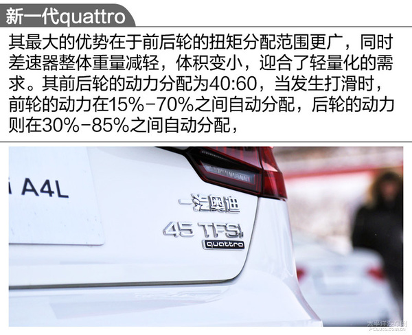 冰上上人们感受的车系为均为配用了新一代quattro四驱技术性的全新A4L,最大的变化取决于原先的托森中央差速器拆换成冠状齿轮分动箱,并根据多片离合器操纵扭距分派范畴。