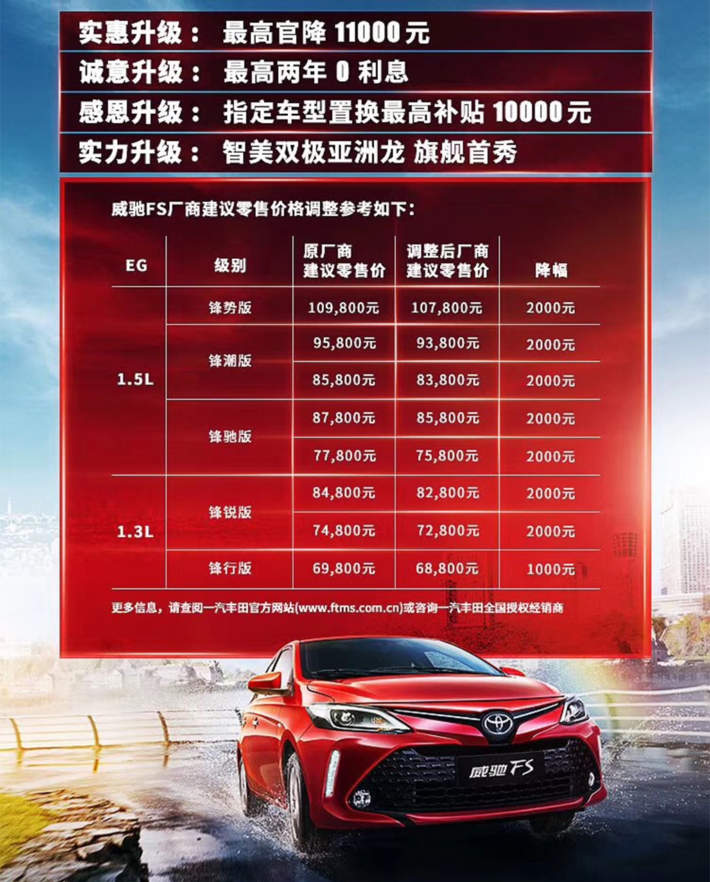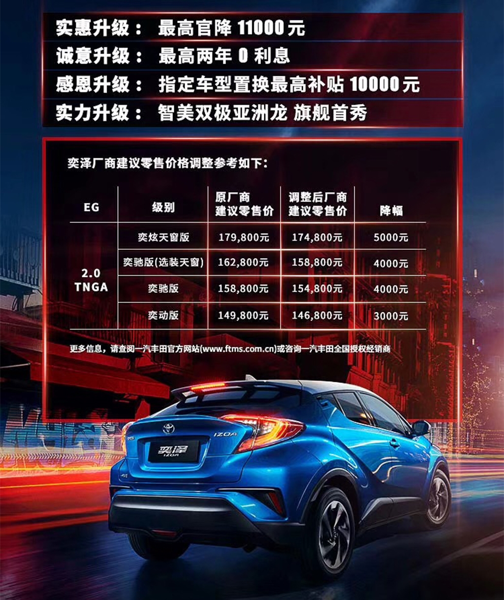 一汽丰田官网的基本信息将于当日起效同歩调节。另外依据國家相关法律法规,小车商品终端设备零售价格由各一汽丰田受权代理商自主制订,顾客如需掌握车系实际终端设备零售价格,烦请致电各一汽丰田受权代理商。