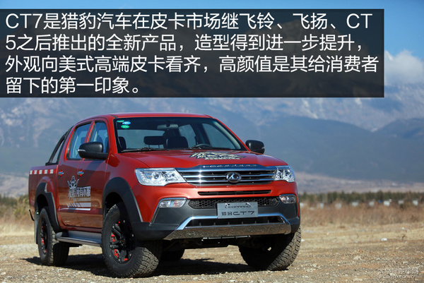 好,饶了那么远,现在开始该让试架的主人公——猎豹CT7登场了。先来详细介绍下其背景图与精准定位。猎豹CT7是猎豹汽车在皮卡车销售市场继飞铃、飞舞、CT5以后发布的全新升级商品,假如说飞铃、飞舞也有着浓浓五十铃TF140皮卡车的身影,那麼从CT5刚开始,猎豹便刚开始试着在外型与车内饰上选用更小汽车化的设计方案,而赶到CT7,造型设计获得进一步的提高,外型向现代美式高端皮卡坚定理想信念,颜值爆表是其给顾客留有的第一印象。现阶段猎豹CT7已正式上市,依据驱动力、尾箱长短、驱动器方式及其配备的不一样,共分成22款车系,关键竞争者为长城风骏6、帅铃T6、骐铃T7、威虎TUV等自有品牌中高端皮卡,本次试架的是柴油版车系,包含两驱和四驱版本号的路面安全驾驶和场所新项目感受。