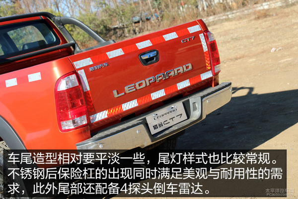 现阶段中国皮卡车销售市场展现出两极化的行情,一种是像福特F150、丰田坦途等进口的现代美式奢华皮卡车,而剩余的则是注重应用性的专用工具型皮卡车,前面一种是富人的小玩具,而后面一种大量是公司行政机关或个人企业的赚钱设备。但是不论是哪样主要用途,顾客都期待皮卡车商品在造型设计尤其是外型层面要充足的霸气侧漏及其高档次。猎豹CT7在这些方面就主要表现得非常非常好,不但解决了五十铃TF140老皮卡车的身影,并且都没有选用仿冒豪华车前脸的作法,大量独立原創的设计方案和时尚潮流炫酷的原素融合在一起,尤其是前脸和轮圈造型设计,与诸多自有品牌皮卡车对比,特性独特,是多少有点儿现代美式高端皮卡的样子。