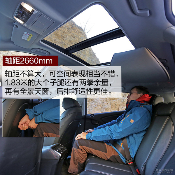室内空间主要表现也很非常好,虽然轮距只能266b250m,可是人们1.83米的大长腿模特還是能有两拳的容量真的是很好了。
