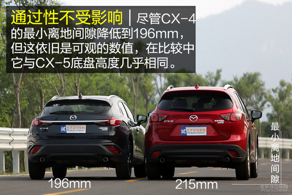 CX-5在平级其他SUV中算操纵优异的,但针对CX-4来讲它也做出大量的让步,虽然座姿早已比别的SUV低了许多,可依然有着较高的重心点,就安全性能也没法做到小汽车同样的水平;但是,CX-4的充分发挥室内空间显而易见要高过前面一种,车体高宽比降低到1530mm,比CX-5低了180mm,离地空隙也从21毫米下降来到196毫米,并且有着更低的座姿,大部分和小汽车无有。更是由于CX-4具有那样的特点,马自达汽车校准上的功底才足以所有保存,终究对SUV来讲,小汽车才算是她们最善于的。