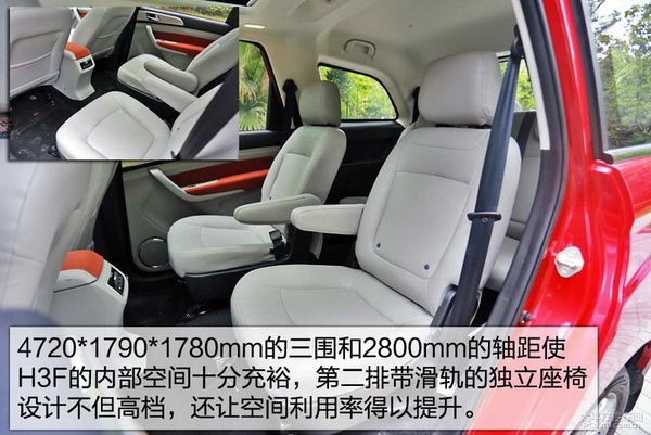 做为一款家用7座MPV,H3F的三围做到了4720*1790*178b250m,比H3略大,而轮距则维持与H3一致的280b250m,这尺寸算作平级中较为引人注意的了,因而室内空间也看起来十分充足,就算载满七个成人也不会觉得十分委屈,第二排坐椅前后左右部位可调式也可以让室内空间的利用率做到利润最大化。