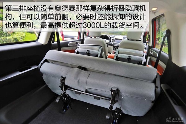 值得一提的是第二和第三排坐椅全是可前翻的,第三排坐椅更为是拆式的。这不仅让旅客进出第三排越来越比较简单,并且一旦真遇上要放大物品的情况下,第三排坐椅一拆、第二排坐椅一翻、您便获得一个容量超出3000升的超大型汽车后备箱了。