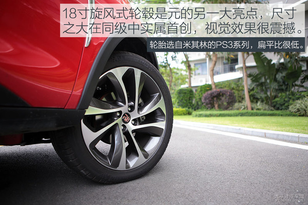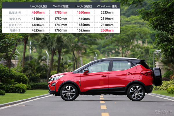 做为一款中小型SUV,那麼绝对不会有太丰厚的车体规格,可是元在平级中的“身型优点”還是比较突出的。元汽柴油版的车体规格为436b250m/178毫米/1635mm,轮距为253毫米。