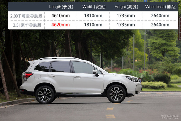 最新款森林人有二种车体规格,由于顶配车系装配线了更加健身运动的前杠,因此4611mm的车体长短要比一般版短了11mm,但总宽和高宽比全是完全一致的,各自为1811mm和173毫米,轮距为2640mm。