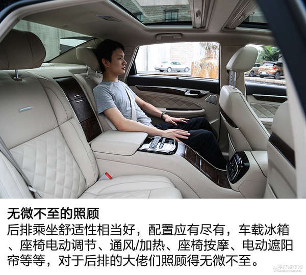 对比前座,后排座的舒适度则至关重要,四座版车系的的后排座乘座舒适度非常好,配备一应俱全,车载冰箱、电动座椅调整、座椅通风/加温、坐椅推拿、电动天棚帘、老板键这些,针对后排座的大佬们能够说成照料的体贴入微了。