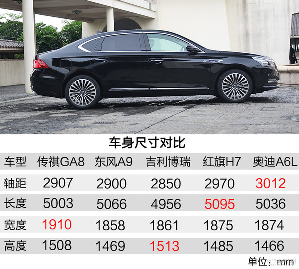 从上边报表中可以看出,除开吉利博瑞在轮距上稍微吃大亏以外,几种车系的轮距都会290b250m之上,车体长短也都会5米长,身高尺寸贴近奥迪A6L,彻底做到C级车的规范,不必担心乘座室内空间的难题。