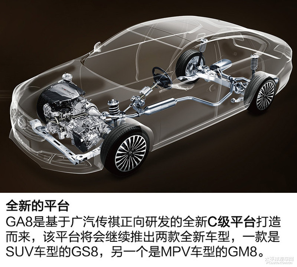 GA8是根据传祺汽车顺向产品研发的全新升级C级服务平台打造出而成,据悉,除开GA8外,该服务平台可能再次发布2款全新升级车系,一款是SUV车系的GS8,另一个是MPV车系的GM8。没多久的未来,还会继续根据这一服务平台发布一款GT系列产品的轿跑车跨界车型。