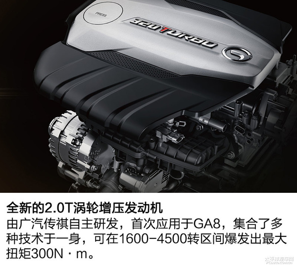 这个2.0T涡轮增压器柴油发动机是由传祺汽车自主研发,初次运用于GA8,结合了多种多样技术性于一身,如GCCS点燃操纵发明专利、低惯量电机控制E-Turbo涡轮增压、DCVVT双持续可变性气缸发动机正时组织、可变性总流量高压油泵、双平衡轴、双品质水泵飞轮这些,可在1600-4500转区段暴发出最大扭矩转速300N·m,对于具体主要表现怎样人们动态性一部分再详尽说。