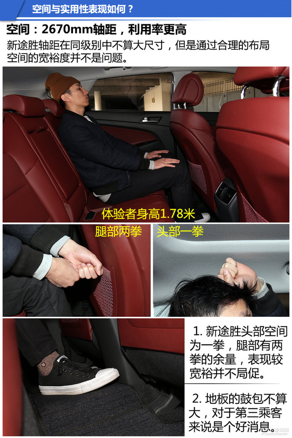 新途胜的轮距为267b250m,在同级別中的确算不上大的,可是在应用性和室内空间主要表现上還是有目共睹的,有效的空间规划与整平的木地板确保了它在具体乘座体会上比RAV4、CRV等商品也要更强一些。旅行箱室内空间充足富裕,坐椅放平后整平化的室内空间与电动后备箱全是提升便捷与应用性的设计方案。