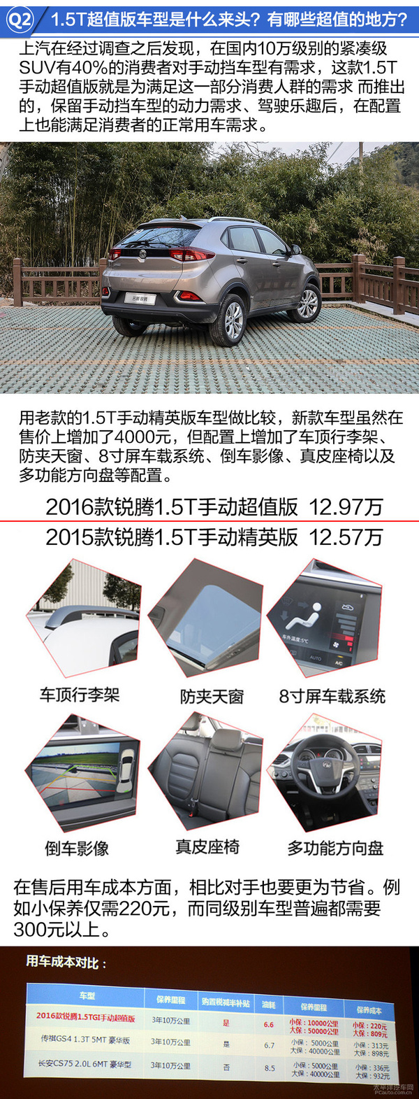 以旧款的1.5T手动式精锐版车系做比较,新款汽车尽管在市场价上提升了4000元,但配备上提升了车顶架、防夹全景天窗、8寸屏车载多媒体、倒车后视、汽车真皮座椅及其智能汽车方向盘等,正可以说价格合理。此外在售后服务养车费用层面,对比敌人还要更加节约。比如小维护保养仅需220元,而同级別车系广泛都必须300元之上。