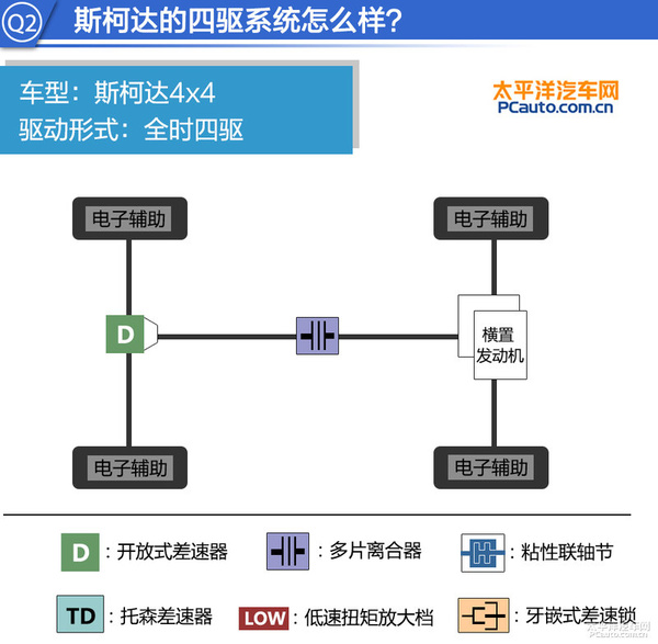 现阶段斯柯达4x4的车系关键选用了新一代瀚德(Haldex)多片离合器式的中央差速锁,这套全时四驱系统软件能关键以前轮驱动主导,在一般路面行车时,前胎出示绝大部分的驱动力輸出,然后轮数最多能得到50%的驱动力,进而让车子耗油量及其扭距分派做到更优。