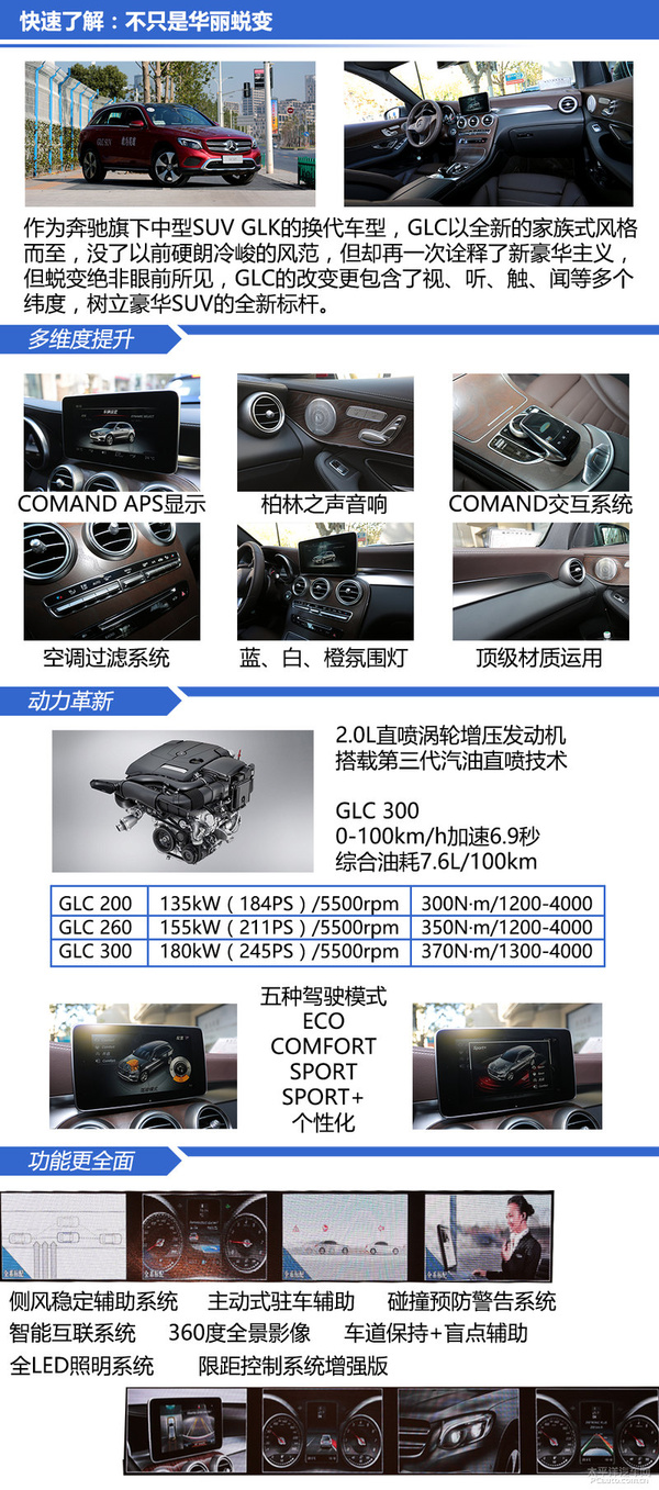 【尊流汽车网 新车试驾频道栏目】2016年的序幕又很近了,回顾这一年,各种豪华车品牌如武术比赛般,跃跃欲试,出类拔萃地发布了主打产品的各个别新款车型。而在各界英雄人物中,新款奔驰也是手艺简直无敌,2016年肯定算作新款奔驰年,做为汽车发明者它一直像大师兄一样推动与操控着局势,从新C级、GLA到不久前的GLE,一气呵成的连技可让敌人无法闪避,在其中还不缺AMG GT那样的绮丽重拳出击。而今日,在人们眼前的GLC那可便是本年度的完美收官绝技!