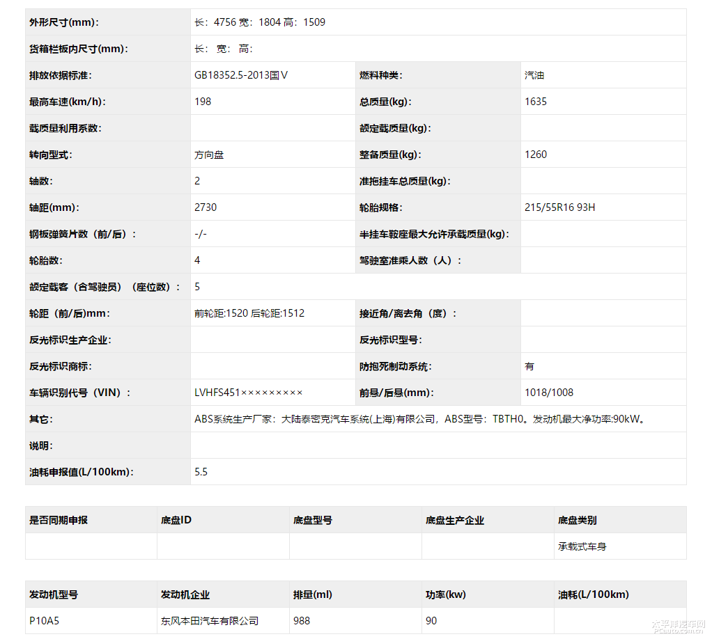东风本田汽车ENVIX享域申报信息 凌派姐妹车