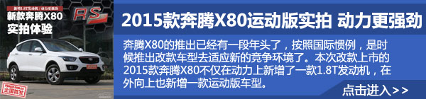 2015款奔腾X80运动版实拍视频点击查看有关阅读文章