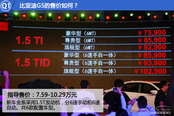 比亚迪G5在9月16日于北京市正式上市(点一下可进到发售文章内容),新汽车全系列配用了1.5T涡轮增压器柴油发动机,配对6速手动式或6速自动变速器,依据不一样的配备,共有6款车系,其市场价区段为7.59-10.29万余元。