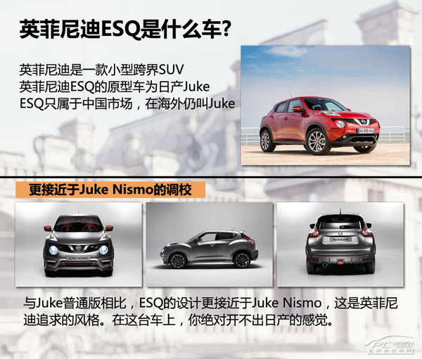 想来很多人都了解英菲尼迪(Infiniti)ESQ了,它便是曰产Juke。它是专为我国市场打造出的一款车,也许能够那样说,只能在我国,它才归属于英菲尼迪(Infiniti),而在国外,它仍然是曰产Juke。