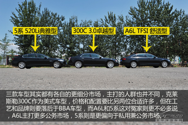 | 车系 | 300C 3.0L 非凡版 | A6L TFSI 基本型 | 5系Li 520 雅致型 |