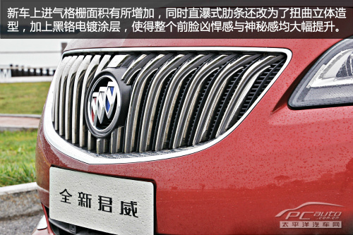 直瀑式设计方案的别克汽车专享进气口总面积有所增加,另外肋条还改成歪曲式立体式造型设计,并选用黑铬电镀工艺镀层取代了以前的银白色不锈钢计划方案,促使全部前脸强悍感与新鲜感均大幅度提高。