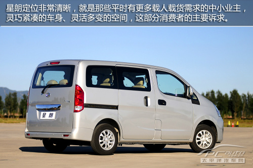 大家還是依照国际惯例从外型谈起。这款车的精准定位十分清楚,便是这些平常有大量载客载客要求的中业主,机敏紧凑型的车体、灵便变化多端的室内空间,这些顾客的关键需求。星朗跟平级车对比,车体规格算不上小,比郑州日产NV200稍大一点,但是区别并不大。