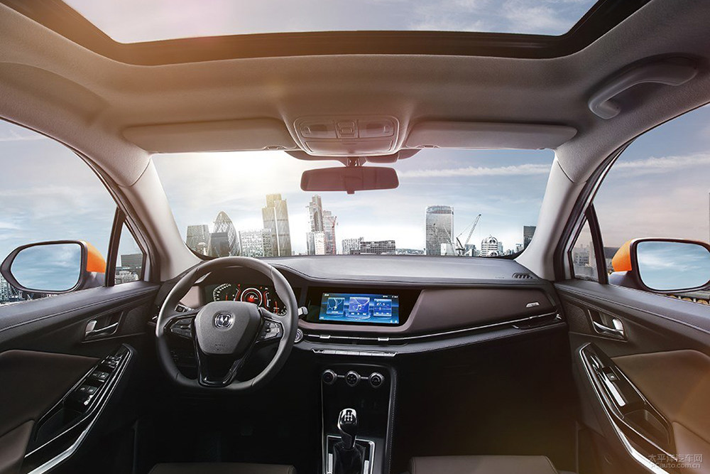 内装一样为长安汽车的全新设计方案,总体选用了灰黑色与深棕色的拼色设计方案,仪表台线框的雕刻技巧时还是颇具炫酷。嵌入式的中控台大屏幕集成化车内饰多种作用的实际操作,也让中控台地区看起来简约和现代感明显。此车还选用了很时尚潮流的围绕式空调风口,极具个性化和寻味。