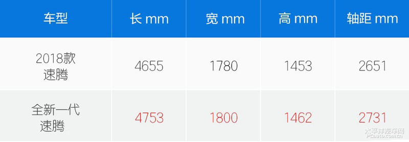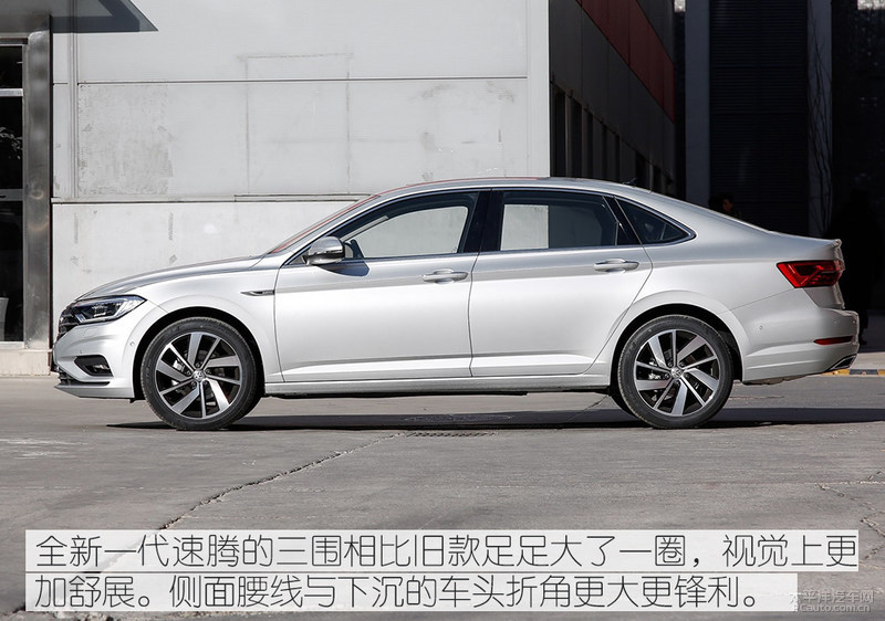 全新升级一代速腾选用了大家MQB服务平台来更换旧款的PQ35服务平台,产品力有一定的提高。另外,对比上一代车系,最新款的车体规格全方位提高,车体长短提升了98mm,轮距也是延长了80mm,做到273毫米。规格的扩大除开产生了更丰厚的乘驾室内空间,视觉效果上也促使全新升级一代速腾看起来更为伸展顺畅,乃至给人一种B级车的空气,由此可见一汽-大家還是很懂中国人的喜爱大size的心理状态。