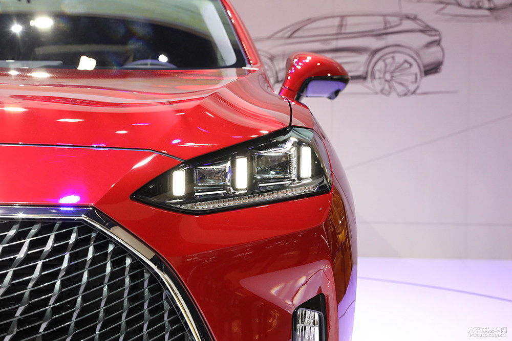新汽车外型延用了WEY P8的大嘴巴式进气口,由一圈不锈钢饰条围绕,造型设计锐利的车大灯小队全新升级款式。特点独特的车灯和进气格栅配搭在一起,造成出的外貌很是个性化、激进派。