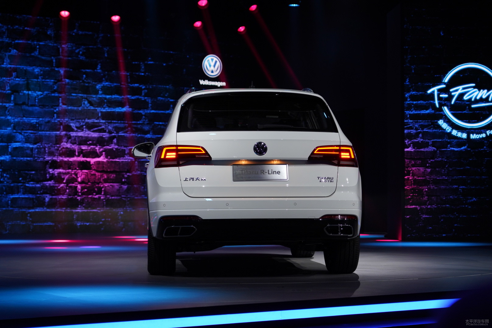 车体侧边维持粗犷简约的设计风格。在改装了更为健身运动圆润的前包围着和与车体同色系的侧裙以后,侧边看起来更为融洽和有运动感,视觉效果重心点有一定的减少,层次感也升高了一个楼梯。一套19英寸双五幅轮圈和R-Line徵章的添加则显出了新汽车的运动版真实身份,也为粗犷笔挺的侧脸雪中送炭。